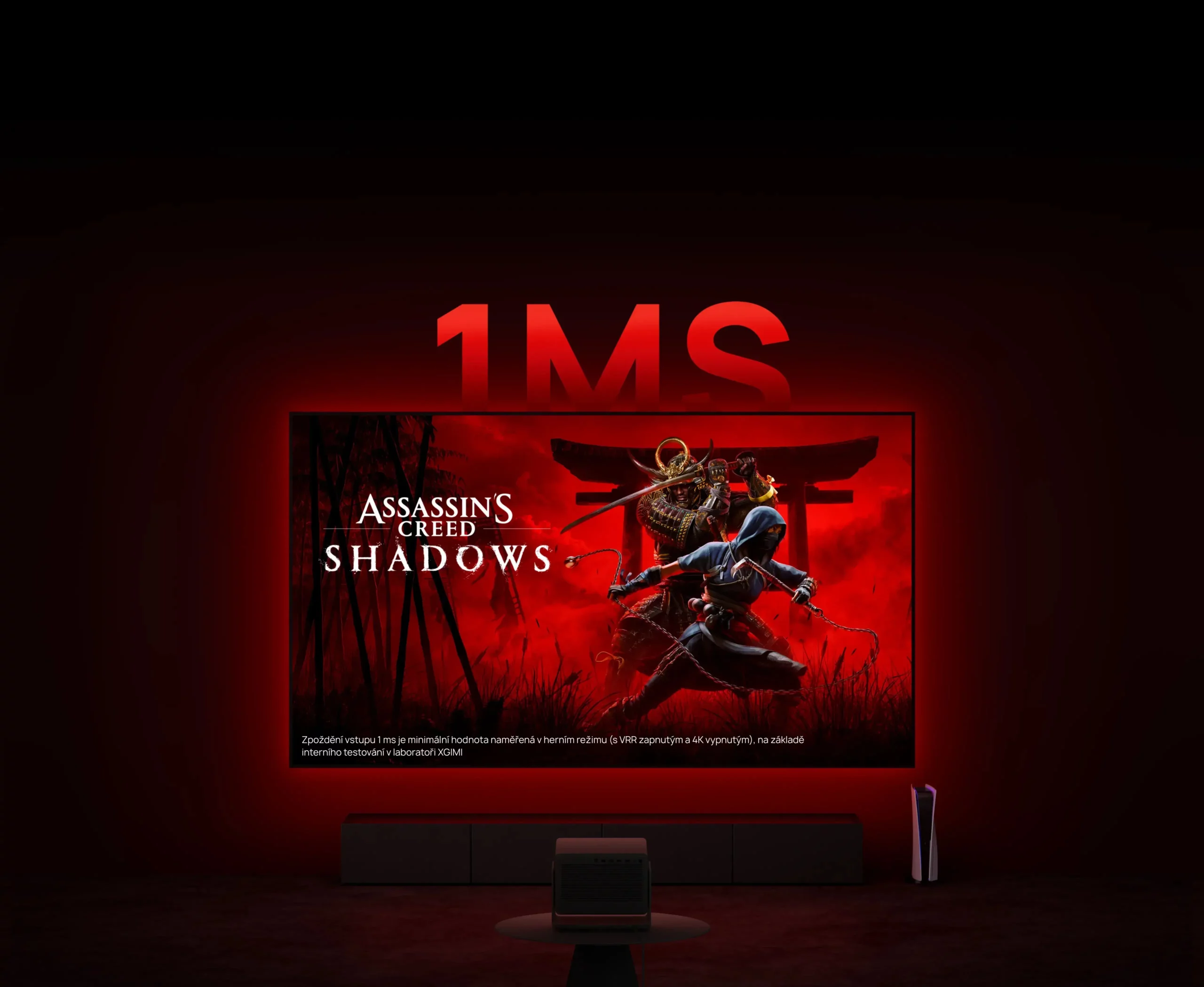 Bemeneti késleltetés: 1 ms 1080p 240 Hz esetén, 2,2 ms 1080p 120 Hz esetén, 3 ms 4K 60 Hz esetén. Játék mód, VRR bekapcsolva, automatikus Keystone korrekció kikapcsolva