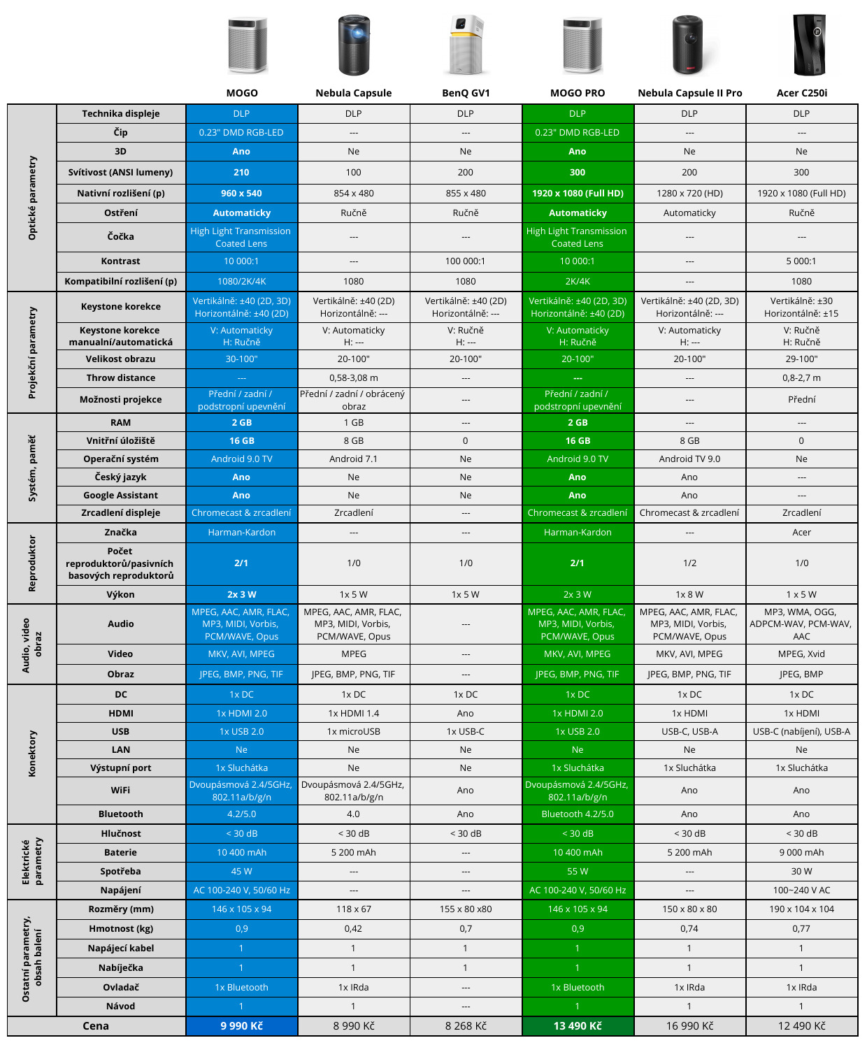 Porovnání projektorů