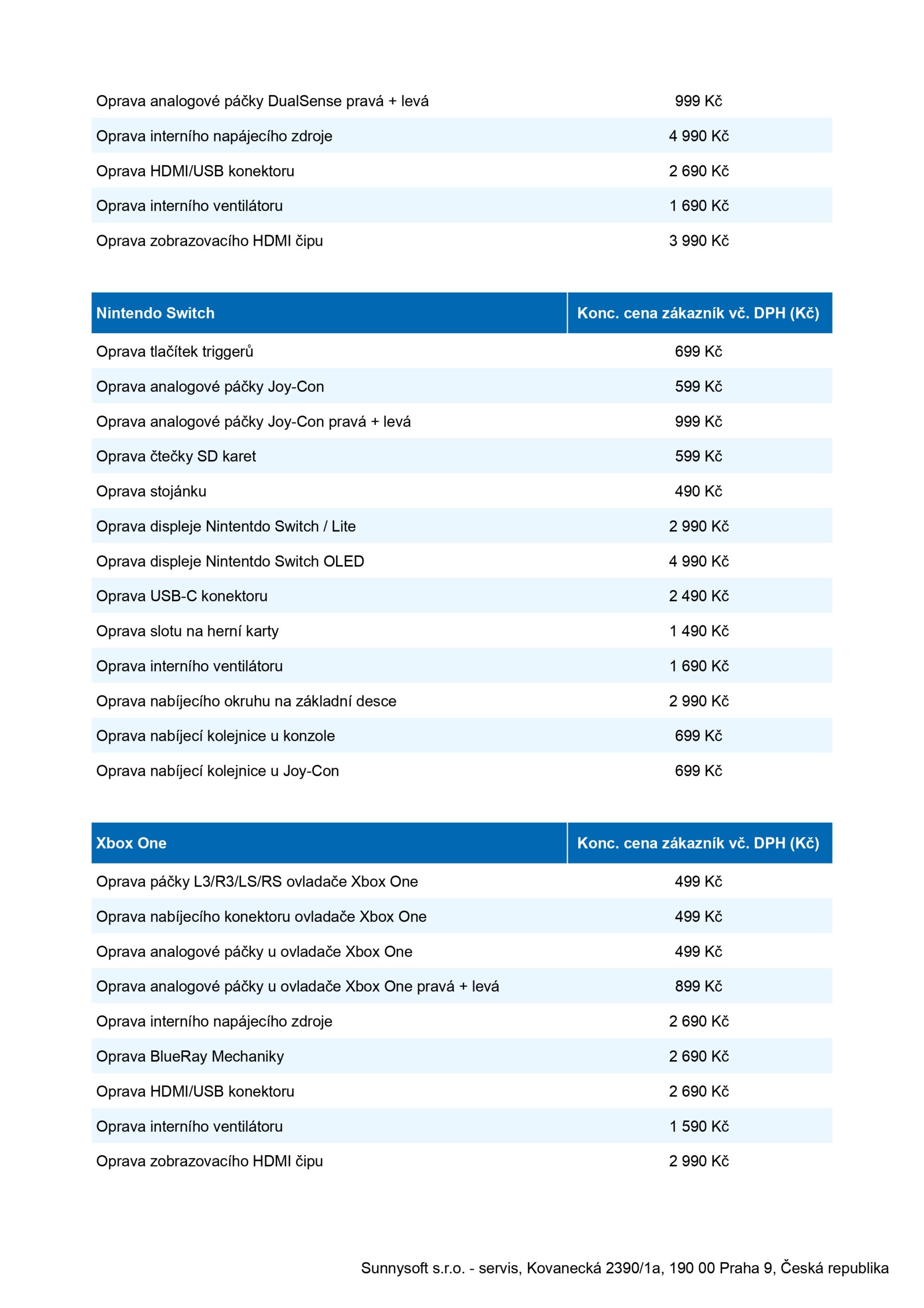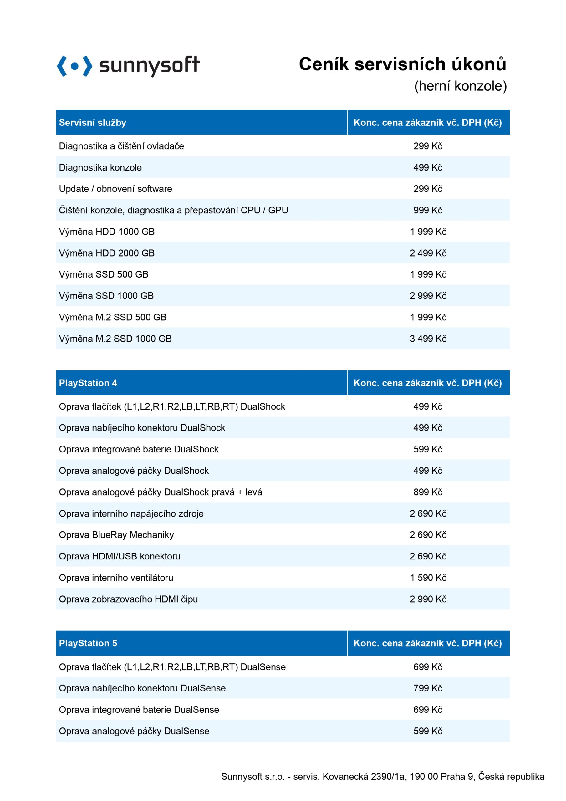 V případě zájmu o servis nám své herní vybavení buď přineste osobně na pražskou prodejnu Sunnysoft, případně jej zašlete spolu s přiloženou informací o jakou závadu se jedná, spolu vaší zpáteční adresou.