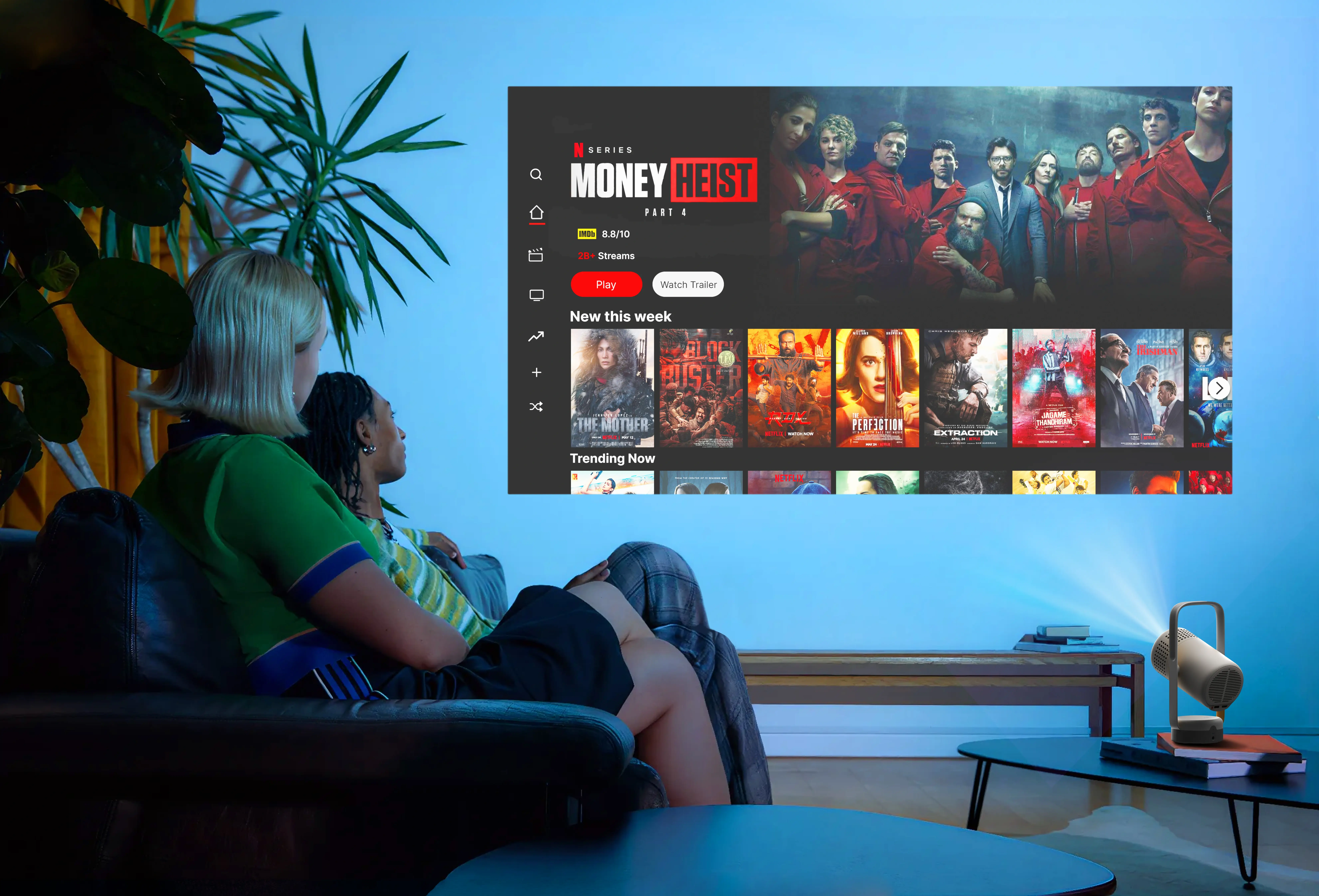 Az integrált Netflix és a Google TV segítségével maximális kényelemben élvezheti kedvenc műsorait a nagy képernyőn.