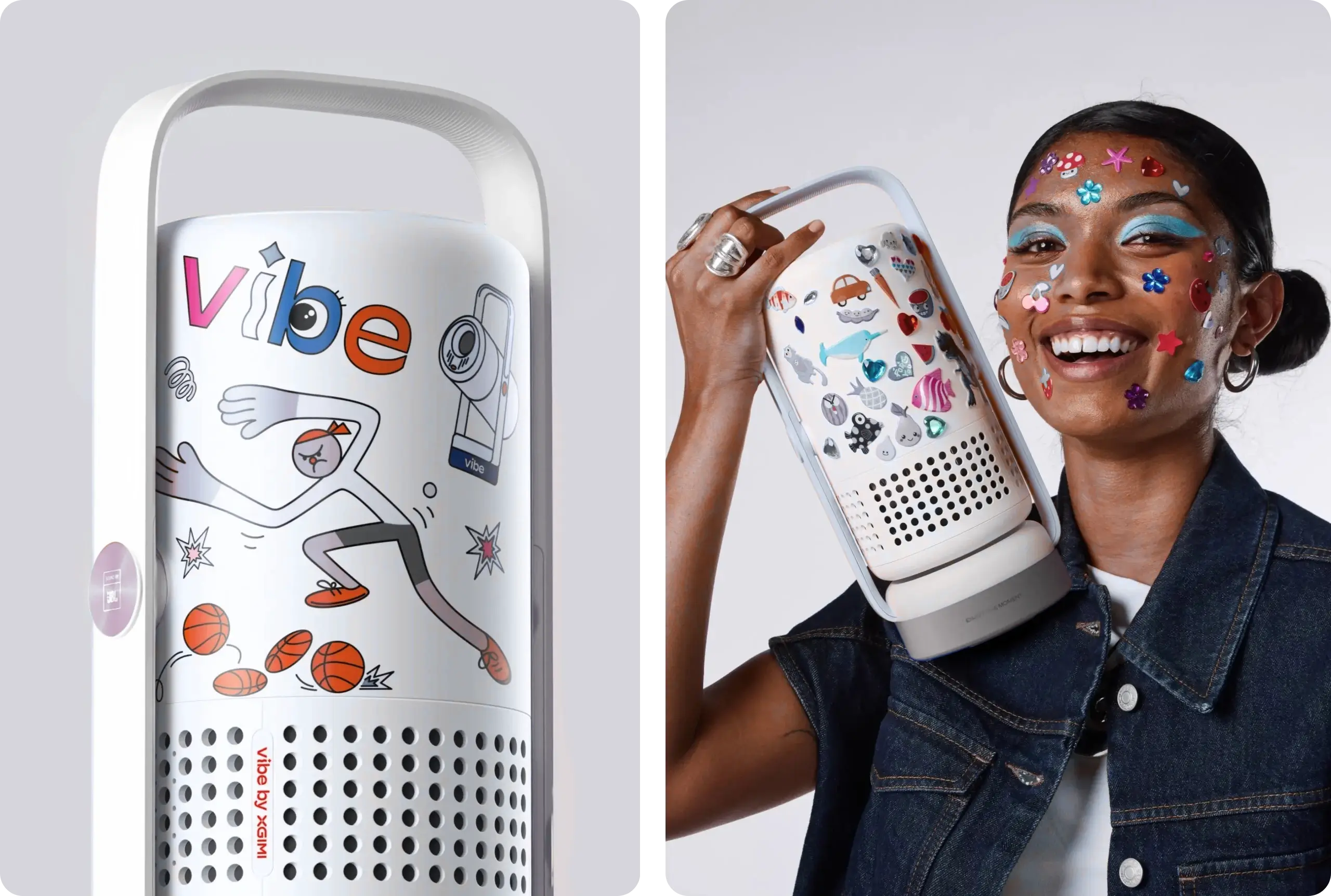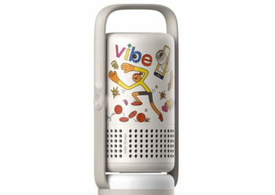 Minden Vibe One (akkumulátoros) projektorhoz egy vidám matricacsomag jár, amellyel a készüléket a saját, egyedi stílusához igazíthatja.